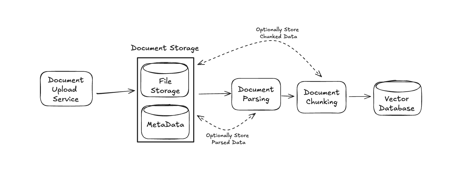 This is flexible to the specific interview requirements. For some enterprise systems, you may be required to have complete traceability or support advanced features like reprocessing with different chunking strategies without re-parsing documents. For this reason, we optionally store the parsed and chunked documents.