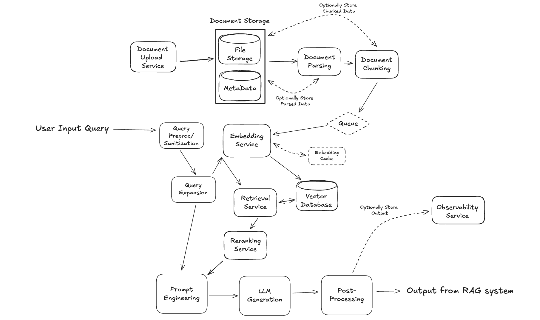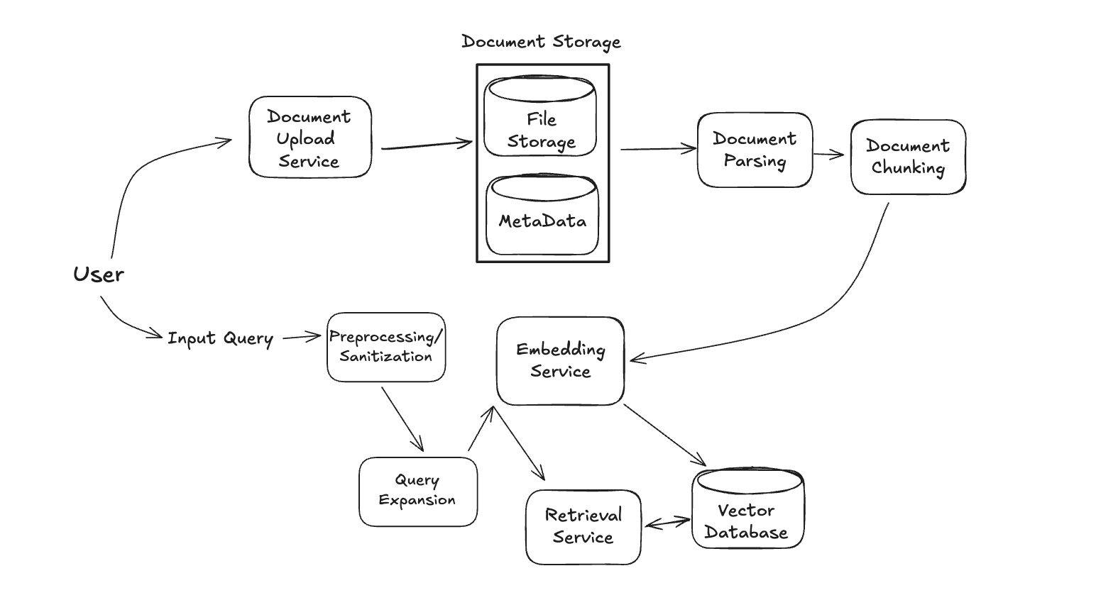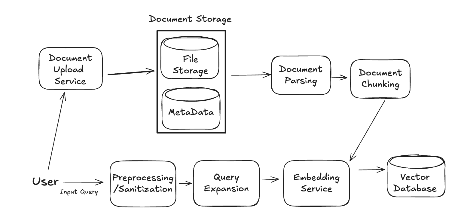 Of course, these services (and the diagram) will be updated significantly, but this is a fine starting point to get the interview going. Your goal in the remainder of the interview is to step through each of these services and outline the RAG system